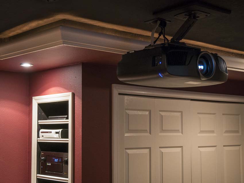 We tested the Elite Aeon AUHD 135-inch screen using an Epson Pro Cinema 4040 projector and RBH Sound SI-760/R In-wall speakers across the front. These were mounted behind the screen, of course. A Denon AVR-X7200W 9.2-channel AV receiver handled the amplification. It has enough amps to drive our 7.2 system with room to expand into Dolby Atmos down the road (we opted to complete the room and add Atmos later since we had easy access to the attic). For Blu-ray, we used an older Oppo BDP-103D player. Other than that, a PS4, DISH Hopper 3 DVR (4K content), and an Amazon Kindle Fire Stick added to the mix.