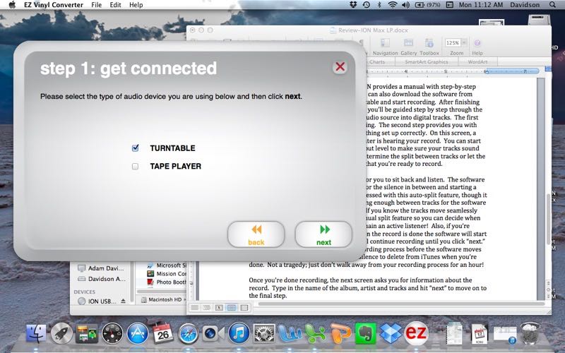 Once you’ve got the software installed (ION provides a manual with step-by-step instructions for both PC and Mac, and you can also download the software from ionaudio.com), plug in the provided USB cable. After finishing the installation and opening the software, you’ll be guided step by step through the process of recording your vinyl or other audio source into digital tracks.