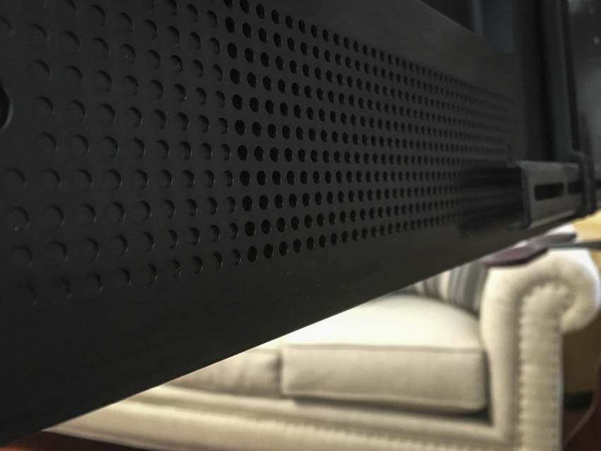 The TV features an incredibly thin depth over most of its surface—less than 5/16 in. At its thickest there’s just 1-1/2 inches of depth. This is, by far, the most elegant television I’ve seen in the past few years. Sure, Samsung has their curved screens—but they end up being impractical—reflecting all available room light. The end result is a television that can only really function well in the dark. Contrast that to the matte screen of the LeEco, and you get an attractive, artistic piece of electronics.