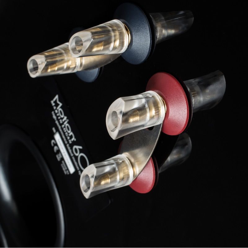 - Inputs: Custom 5-way bi-wire tool-less binding posts