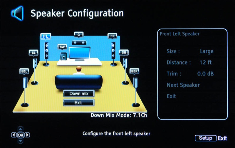 Editor’s Note: The system is taking the distance you enter in order to set up proper delays for the center and surround speakers’ audio signals. This ensures the audio from all speakers reaches your ears at the same time.
