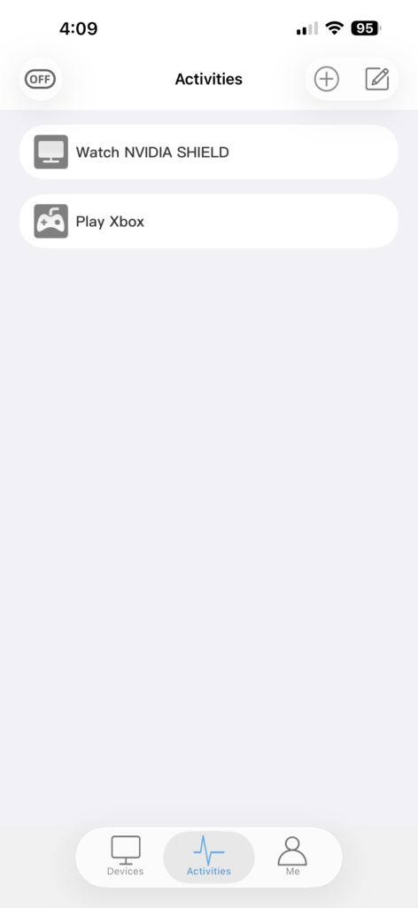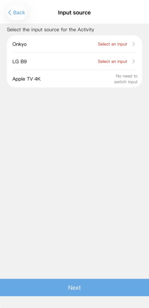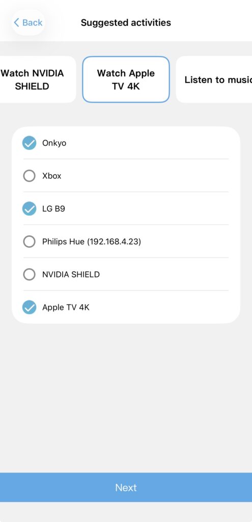 Activities require patience. Not because they’re hard, but because it’s not always 100% intuitive. For example, the Sofabaton finds my Onkyo TX-NR7100 right away, but it still needs me to confirm how the device turns on and off. Same with inputs. The device knows I have to switch inputs, but it has duplicates for each input, and they don’t all work. This requires me to test each input manually and delete the others. This step is where 99% of user frustration comes from. Once that’s done, all you need to do is select the devices, indicate the inputs, and let it sync. Just like Harmony.