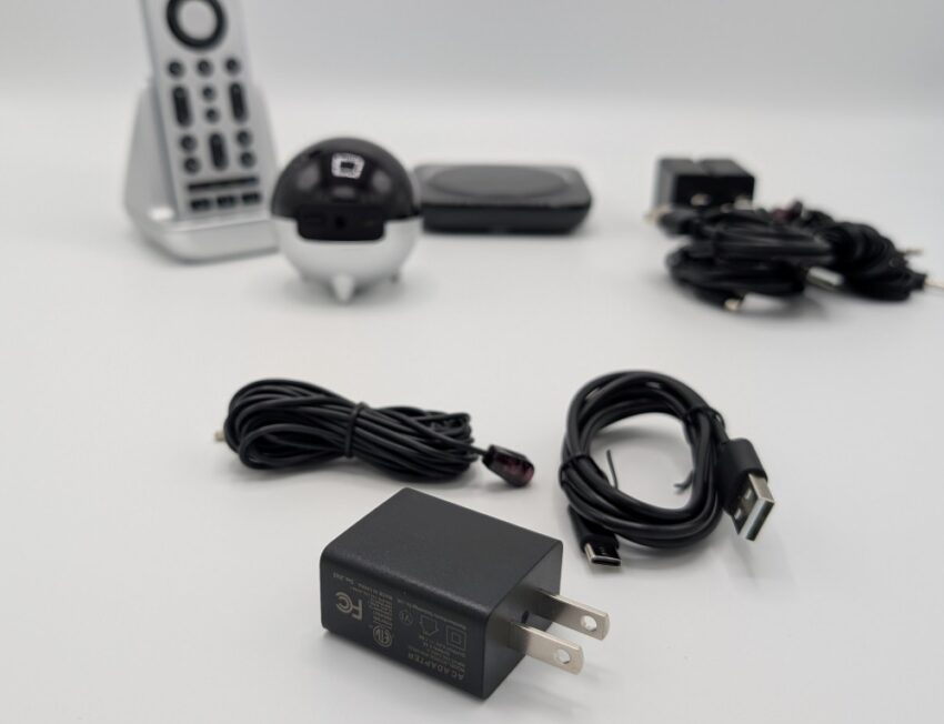 I don’t do unboxings, so let’s be brief. Inside the X2’s box, you will find the remote, a charging base (something users asked for), a pair of IR extenders, the hub, and the power bricks and cables. No muss no fuss.