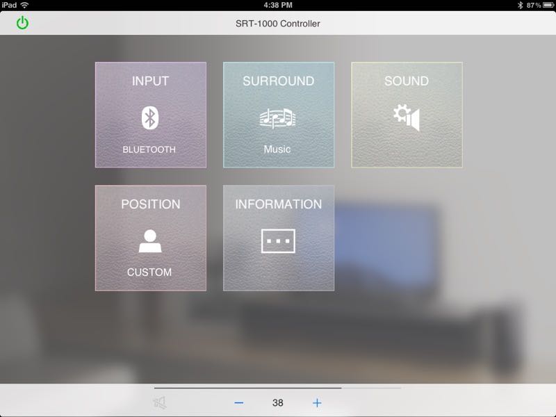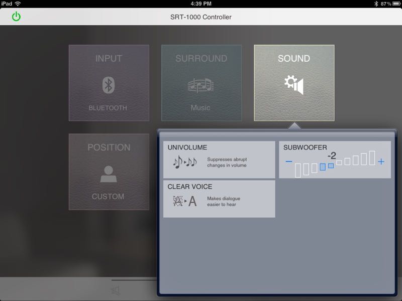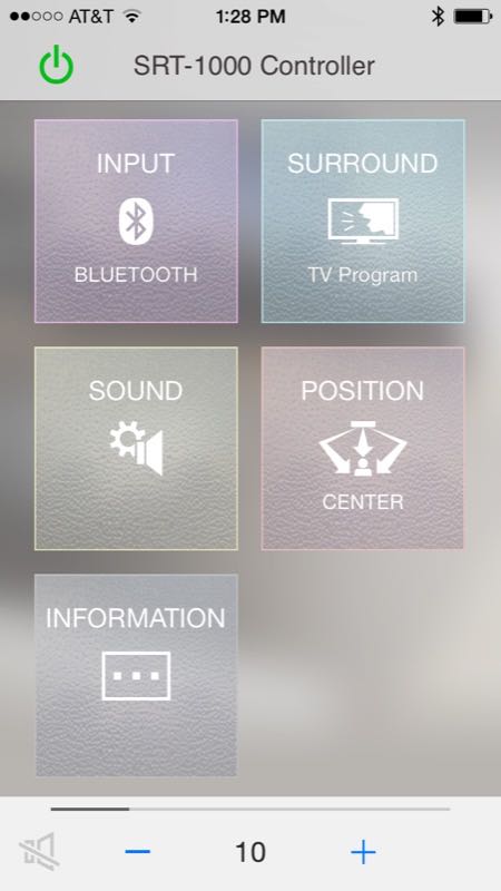 The free HT Controller app allows you to use a customized configuration for the SRT-1000—so you can set it up in a room that may not allow for perfect center placement of the system.