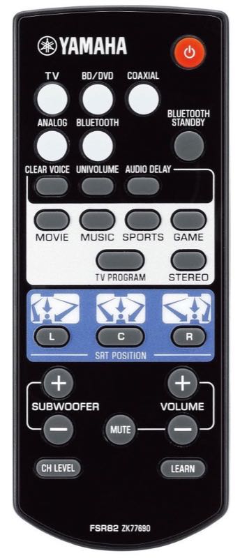 I love the front LEDs on the SRT-1000. Yamaha designed the TV speaker base to give you feedback when you make certain modifications with the remote. For example, when you set the SRT position to indicate if the SRT-1000 is in the middle of the room or the left or right, three of the 9 LEDs light to tell you that it is correctly configured. Want to change volume? The front LEDs suddenly turn into a long volume level indicator that flashes when you max it out. Mute the system and all the LEDs flash until you unmute it. Switch sound modes, and the system blinks to let you know it received the command. Everything is very intuitive.